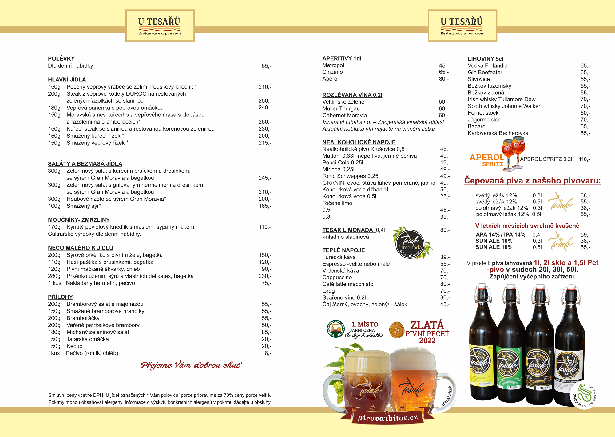 Jídelní a nápojový lístek