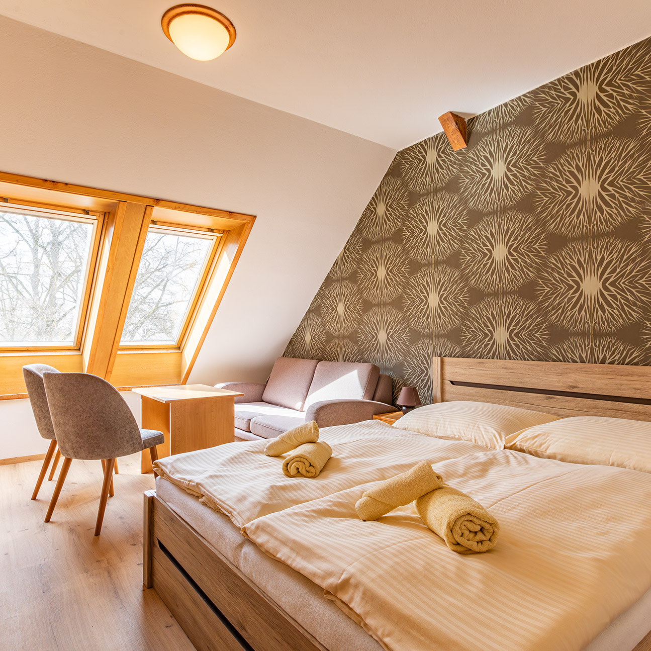 Nabízíme pohodlné ubytování v útulných pokojích přímo v centru obce, nebo v apartmánových chatách U Tesařů v klidné lokalitě Bítov – Horka, pouhých 200 metrů od vody. Užijte si dovolenou plnou pohody, koupání, rybaření a krásné přírody jižní Moravy.